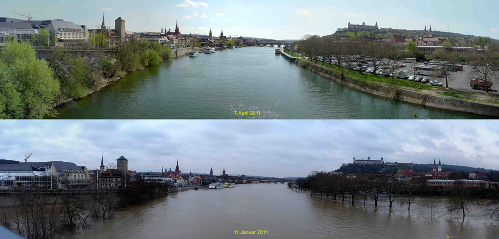 Blick von der Friedensbrücke auf zwei Gesichter des Mains in 2011